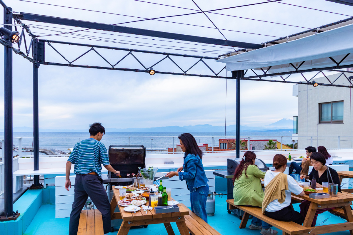 テラスは、江ノ島を間近に見据えた景色と開放感を同時に味わうスペシャルシート。