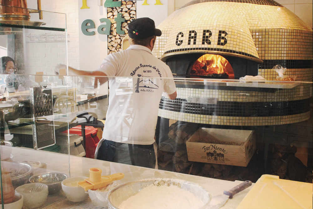 白をベースに木のぬくもりを活かしたカジュアルダイニング。くつろぎ感いっぱいのテーブル席、 風を感じるテラス、ライブ感あふれるピザ窯前カウンター、美しい格子模様のパーテーションで なだらかに仕切られたセミ個室。シーンに合わせたお気に入りのお席をチョイスして・・・。 全64席。