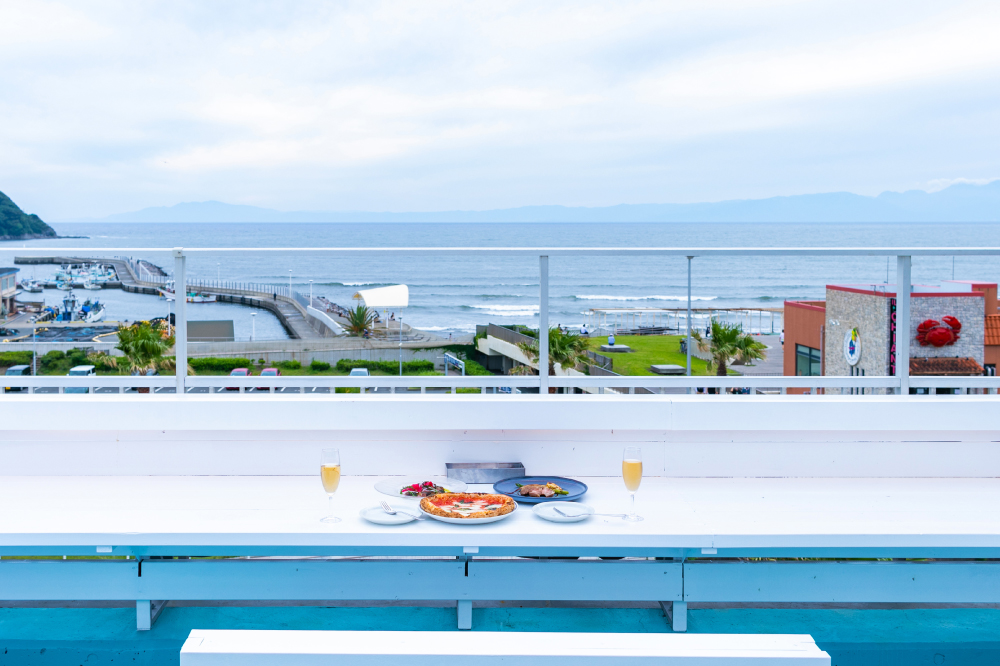 江ノ島から茅ヶ崎、晴れた日は富士山まで臨む眺望。国道134号沿線、THE BEACH HOUSEの2・3階と屋上。店内、テラスからの江ノ島、茅ヶ崎、晴れた日は富士山まで臨める眺望は最高の贅沢。 屋上では、絶好の景色を眺め、海風を感じながらのBBQが大人気! 面倒な炭の火おこしと後片付けも不要! 江ノ島&相模湾の借景を眺めながらの屋外BBQはココ、レストラン ガーブだけ。 青空の下、一面に広がるオーシャンビューを眺めながら新鮮素材を焼きたてでどうぞ!
